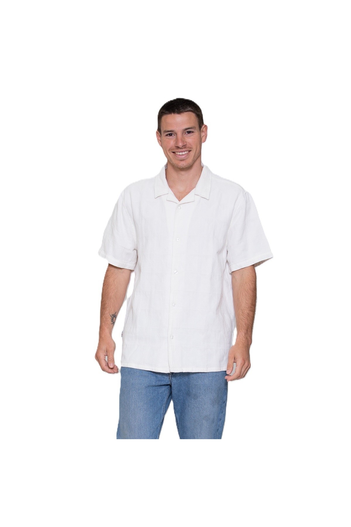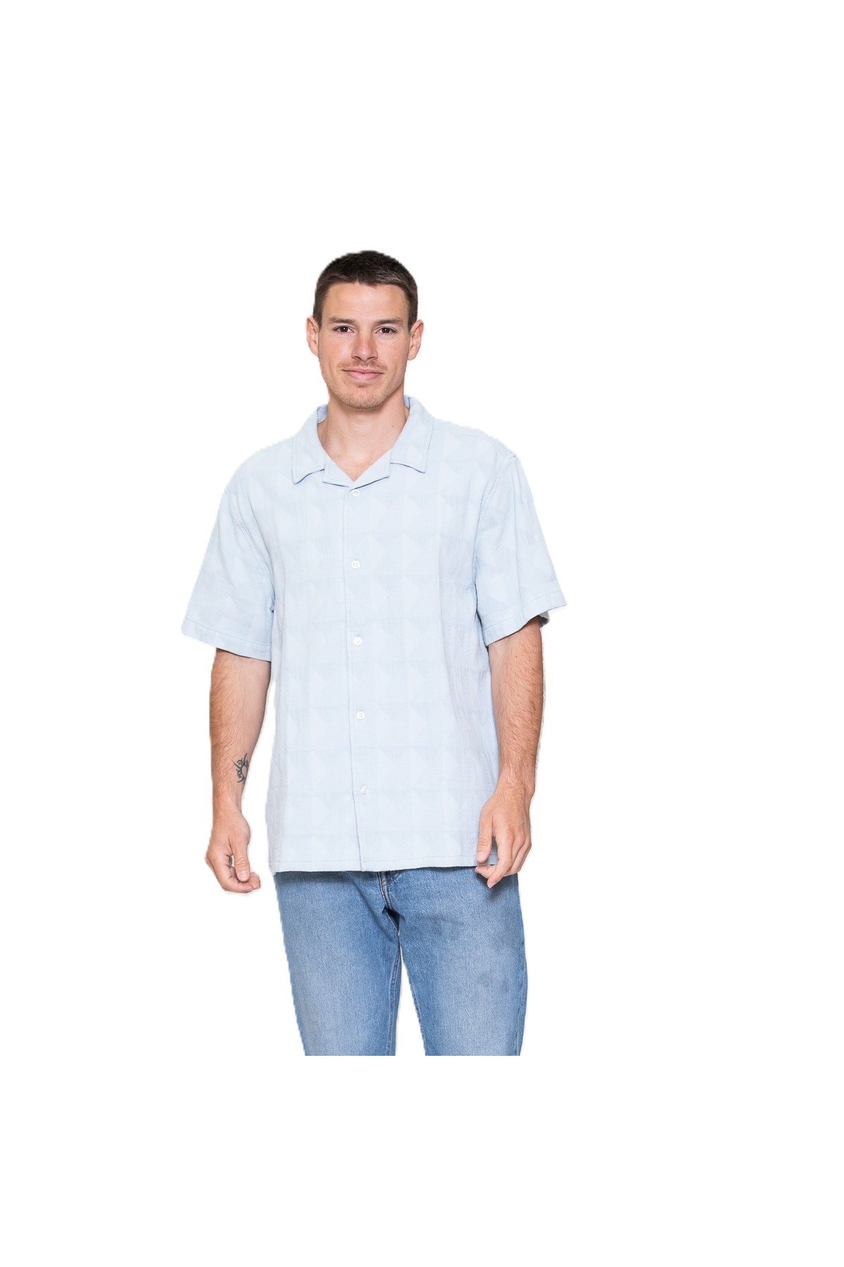 Katoenen jacquard voile shirt met korte