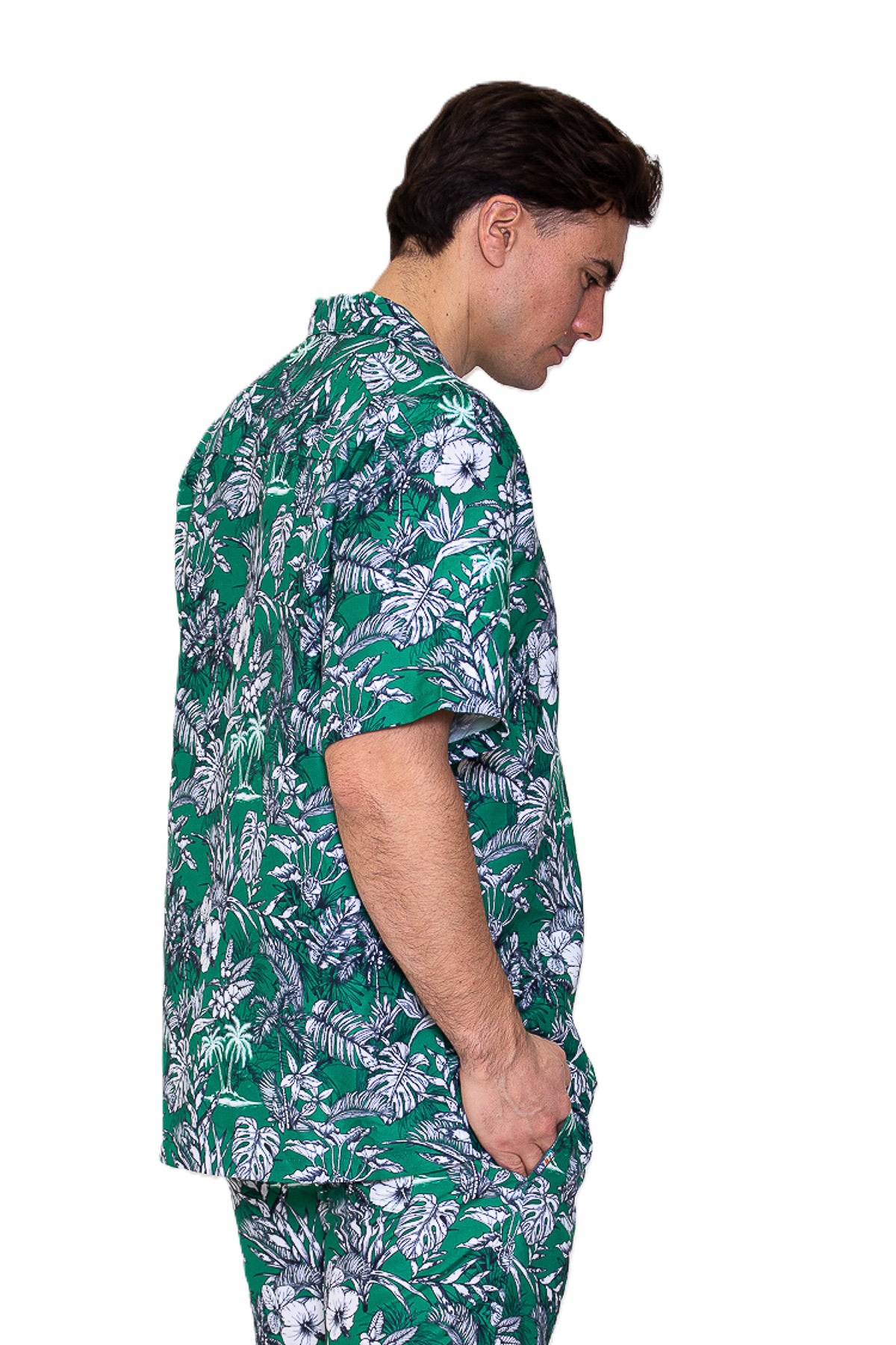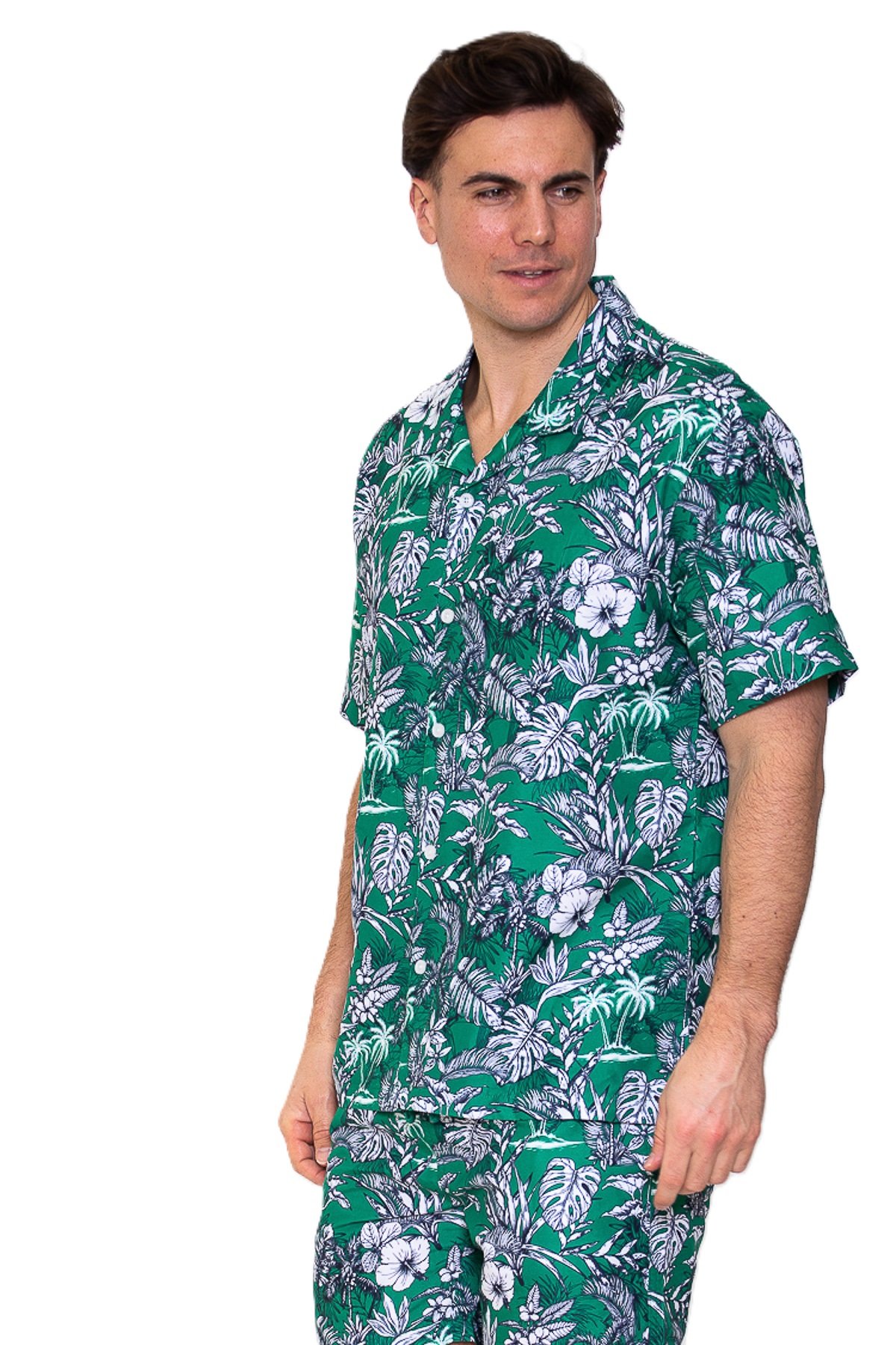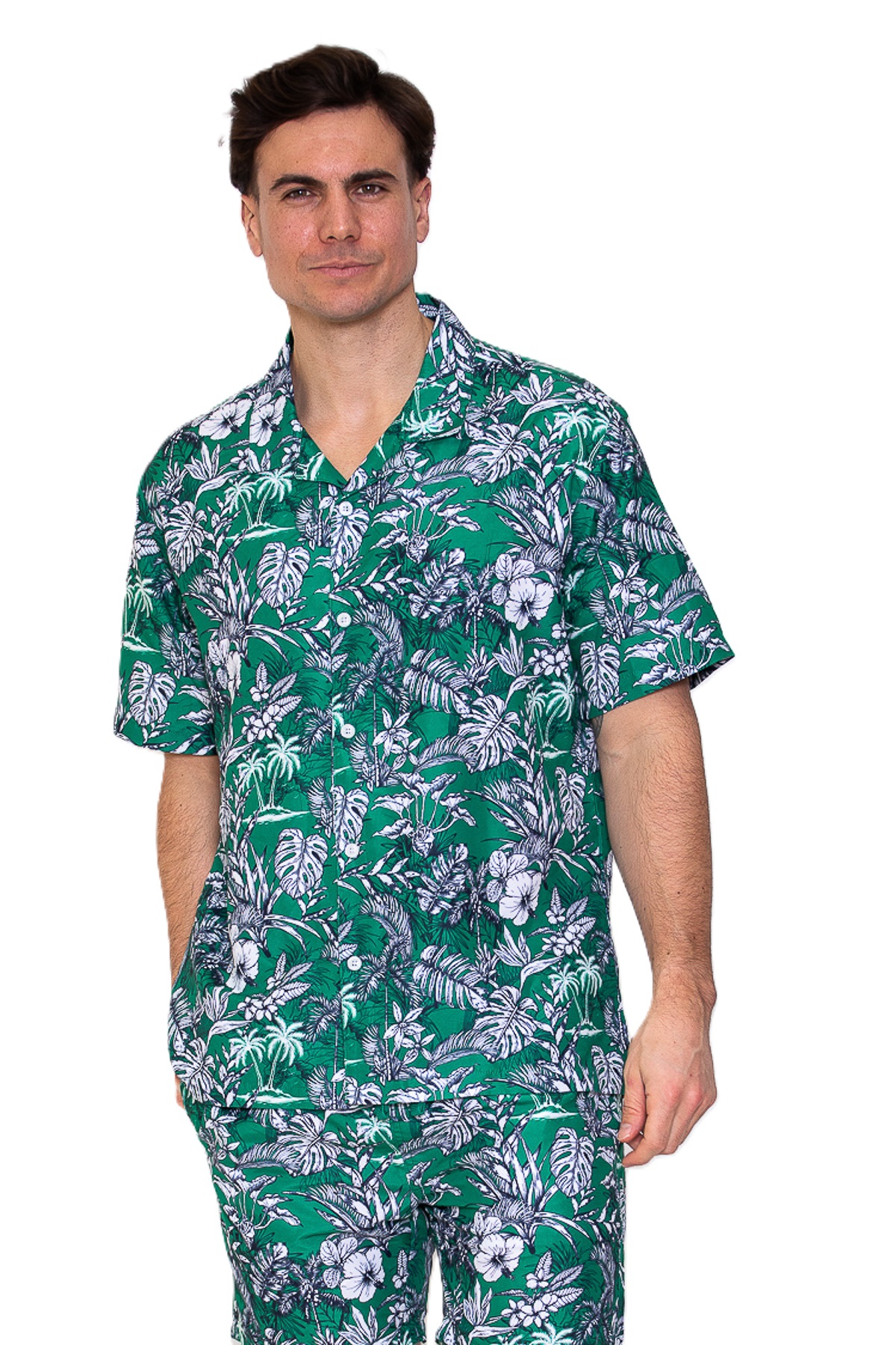 Polyester poplin met AOP korte mouwen