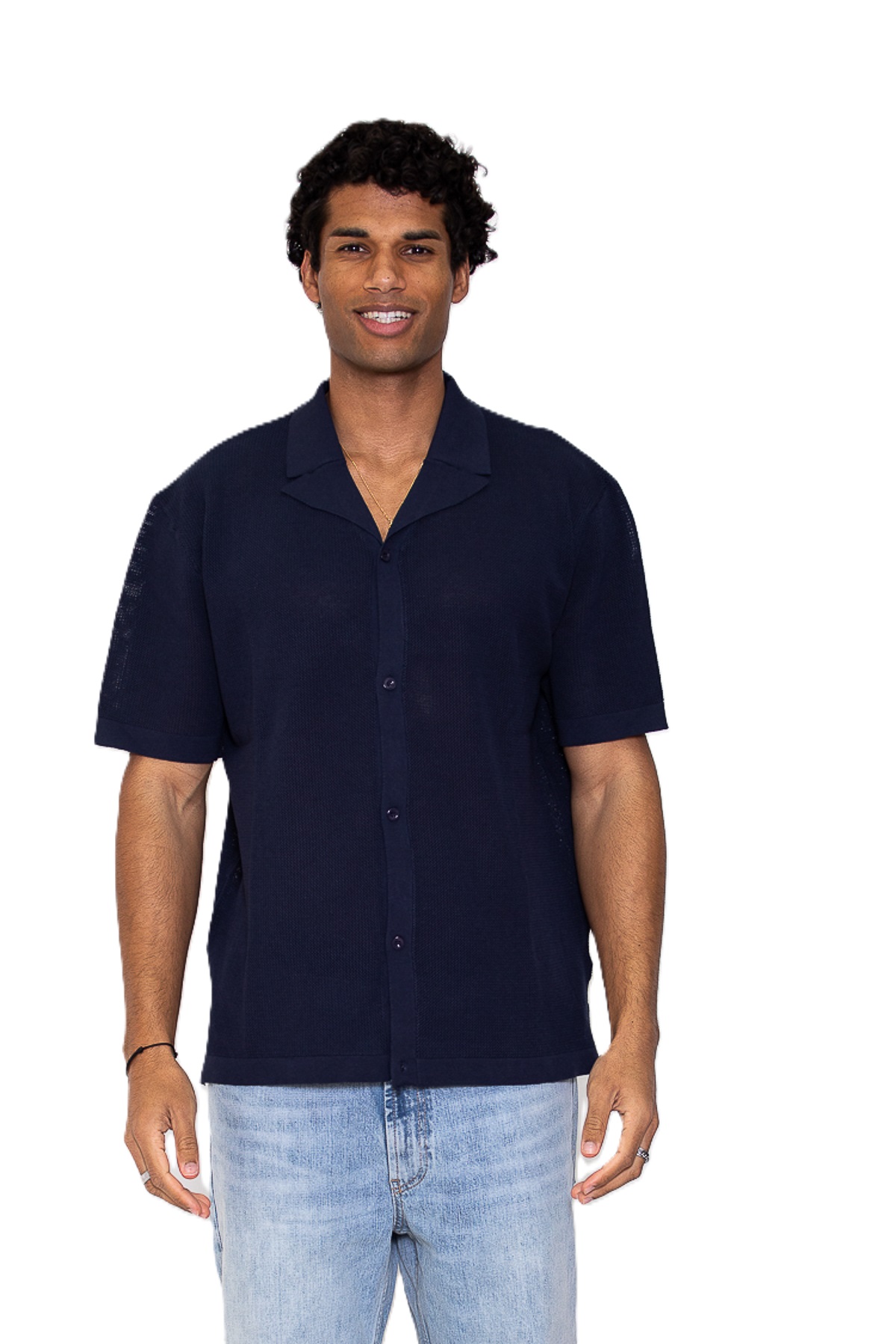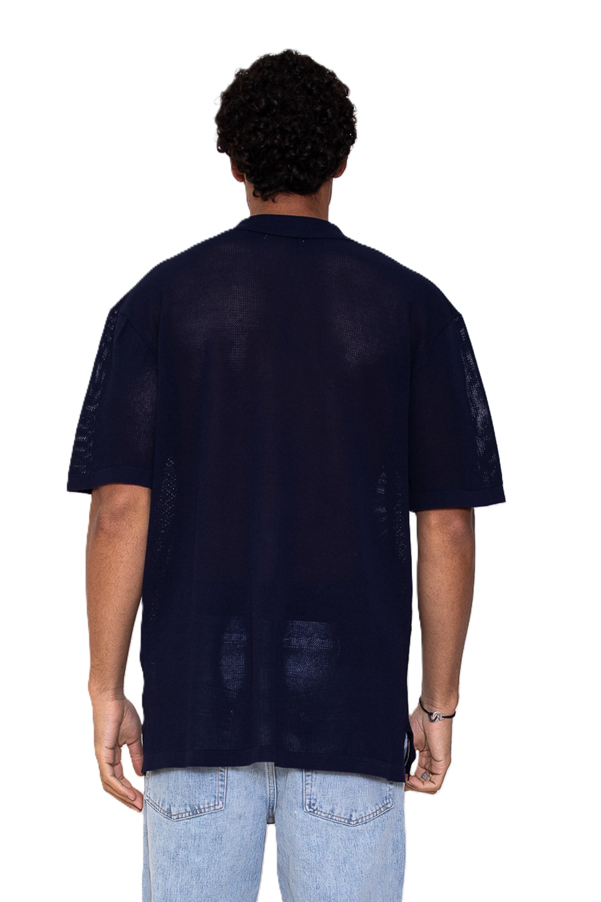 Viskose poplin mesh gebreide shirt met korte