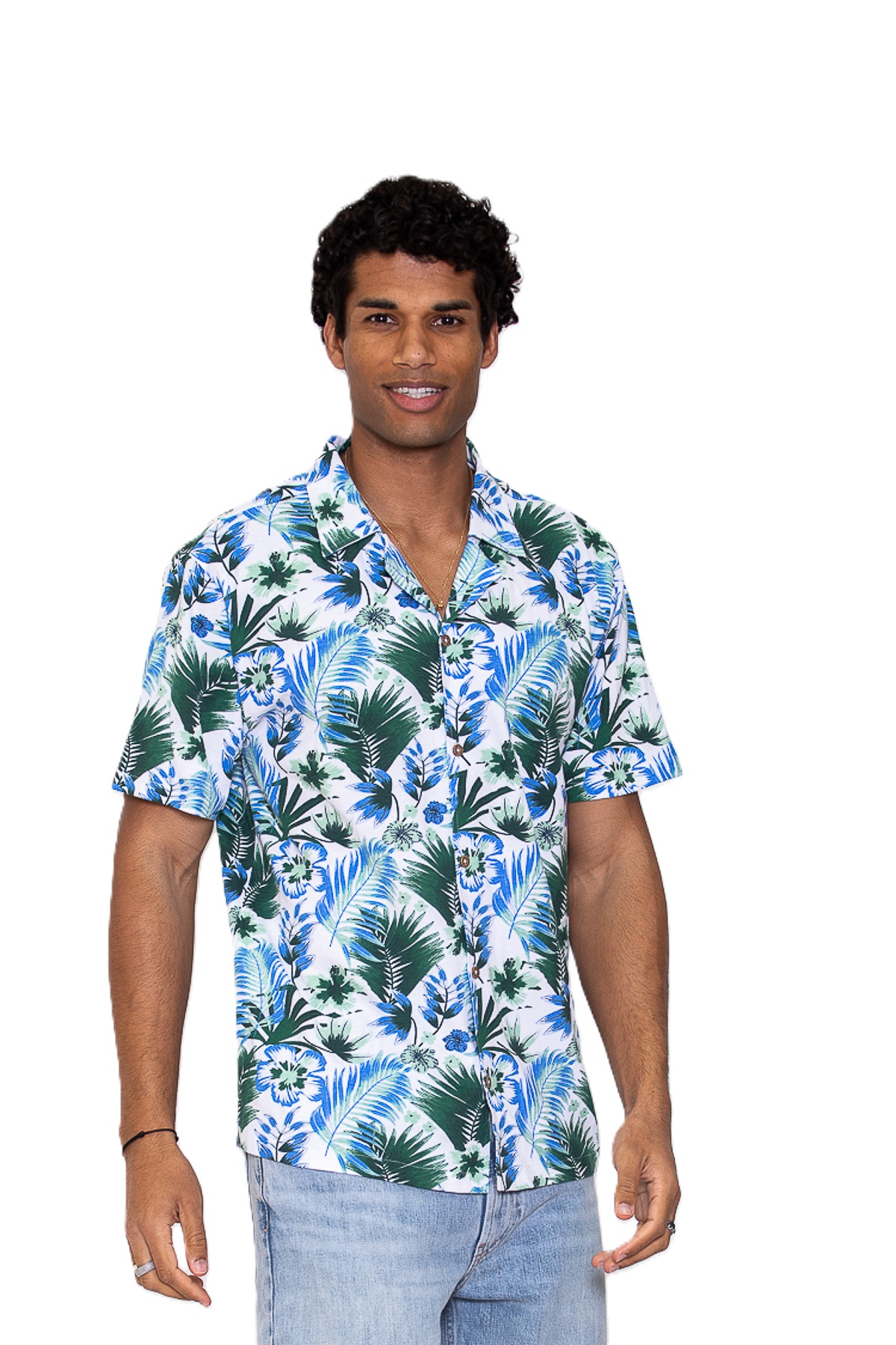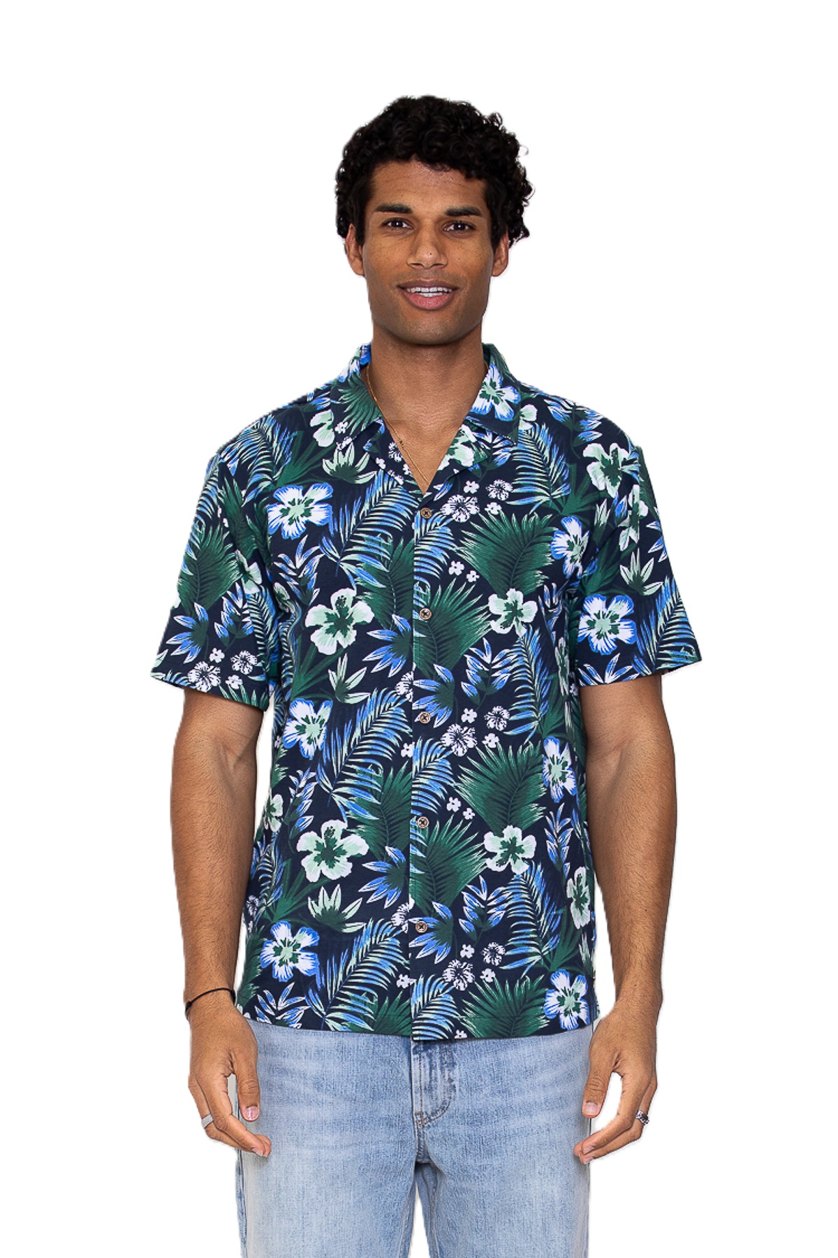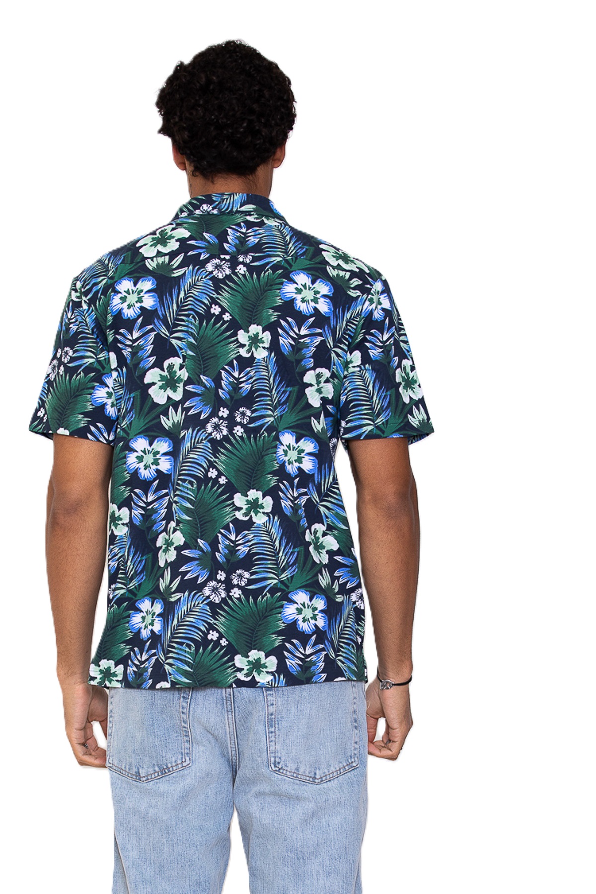 Katoenen pique met AOP shirt met korte