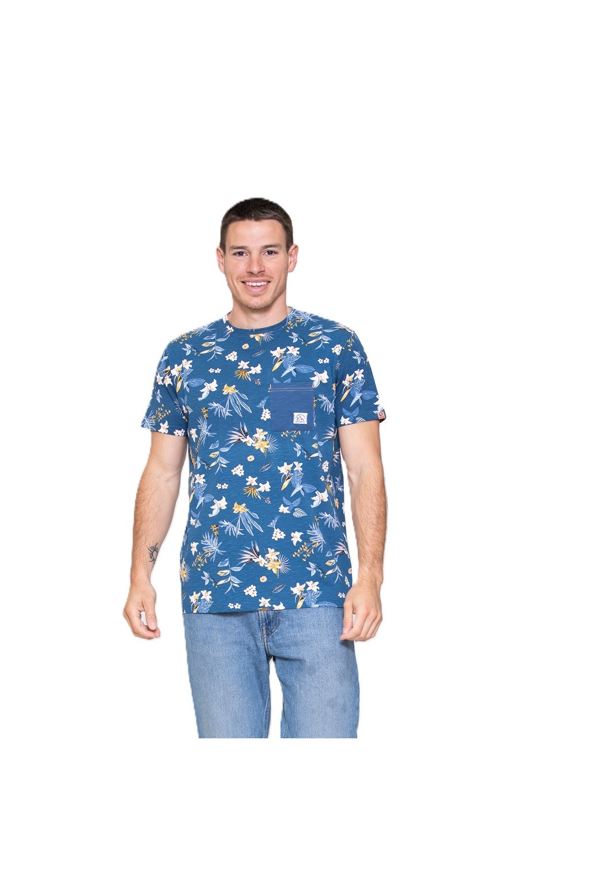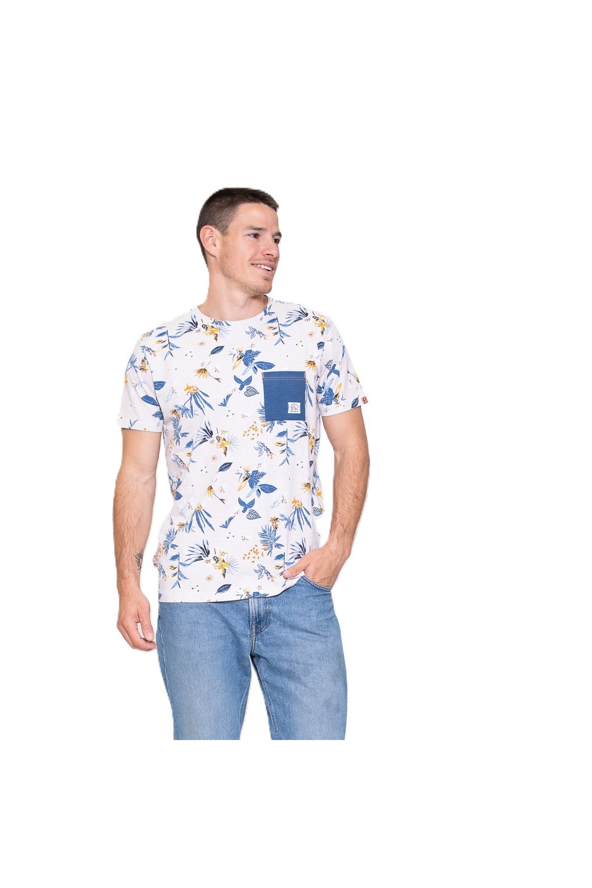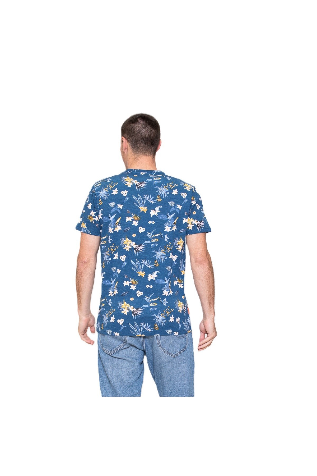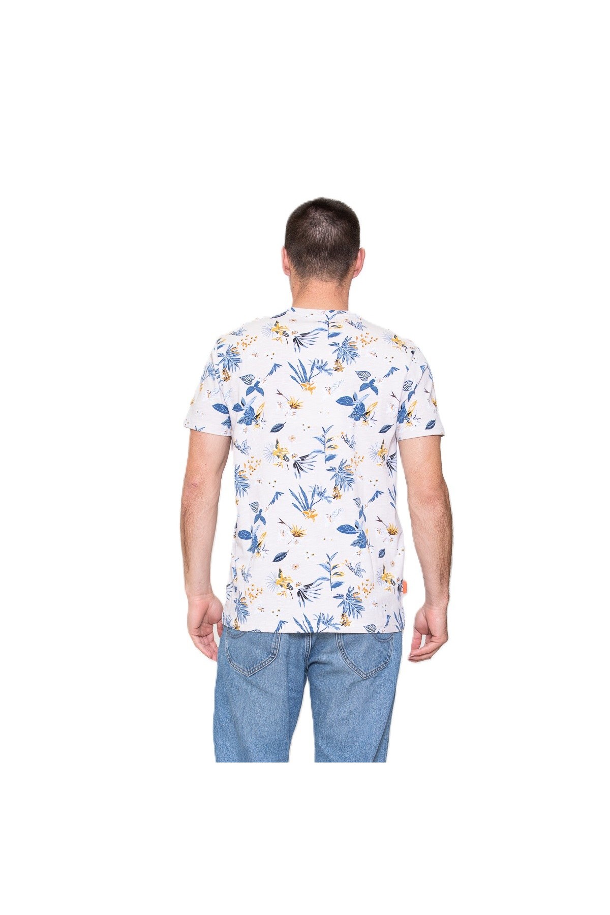 Katoen slub jersey met AOP ronde hals T-shirt