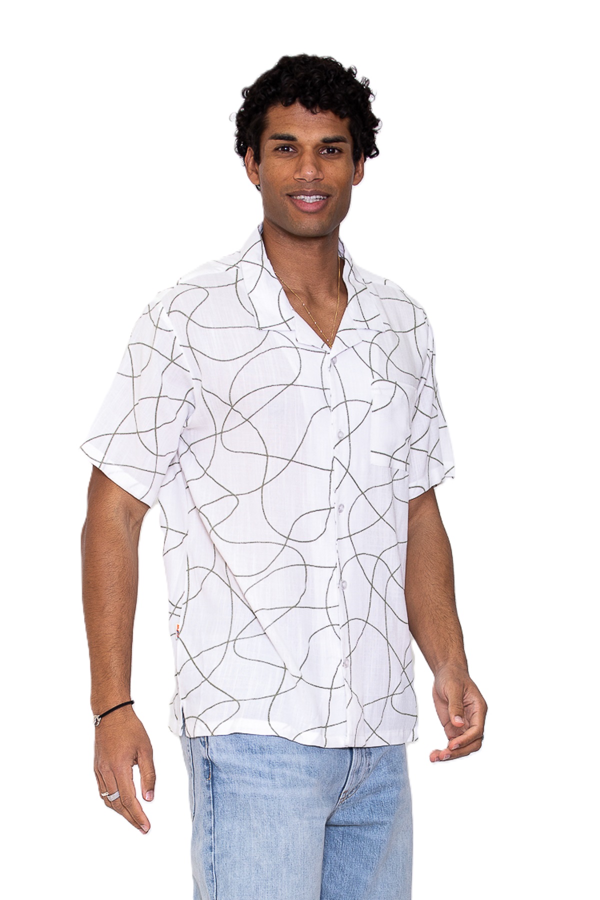 Viscose poplin met AOP korte mouwen